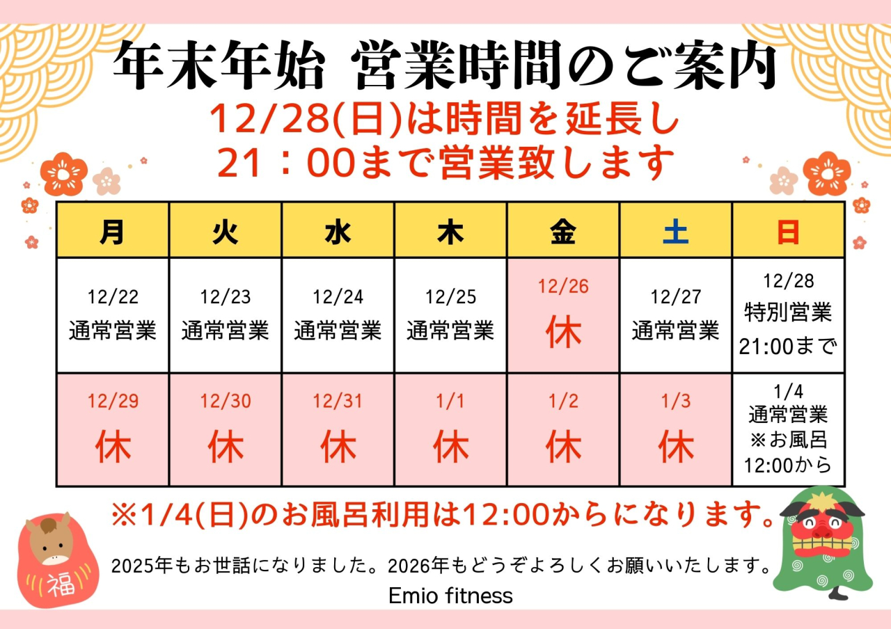 【重要】年末年始の営業について